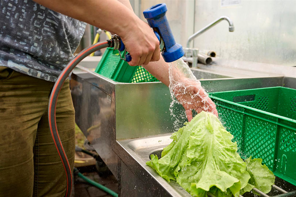 Die ideale Ergänzung zu unserer Gärtnerei ist die Hauswirtschaft: frisch geerntet landet unser eigenes Gemüse für die Zubereitung eines leckeren Bio-Essens in unserer Küche. Alle anderen Zutaten werden im Bio-Großhandel Elkershausen zugekauft. Fleisch kommt aus dem Hofgut Rocklinghausen.